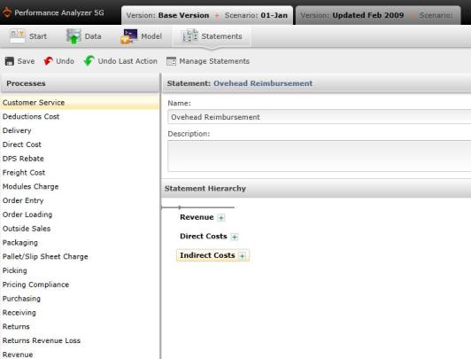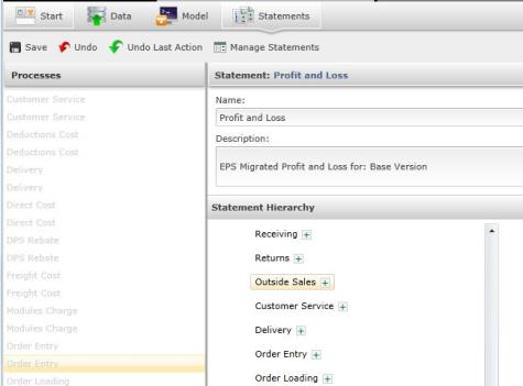 The Statements screen allows you to create or edit statements from your model.