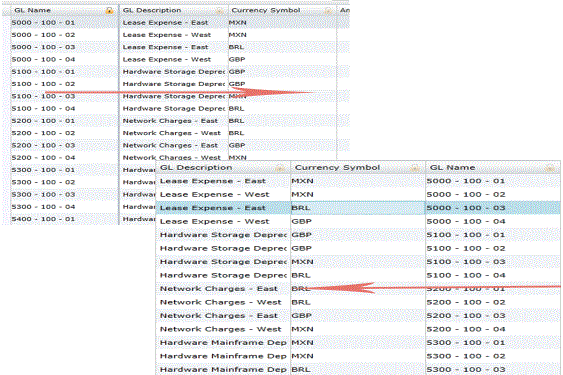 Columns can be moved to different position by selecting a column and moving it to a different place on the table.